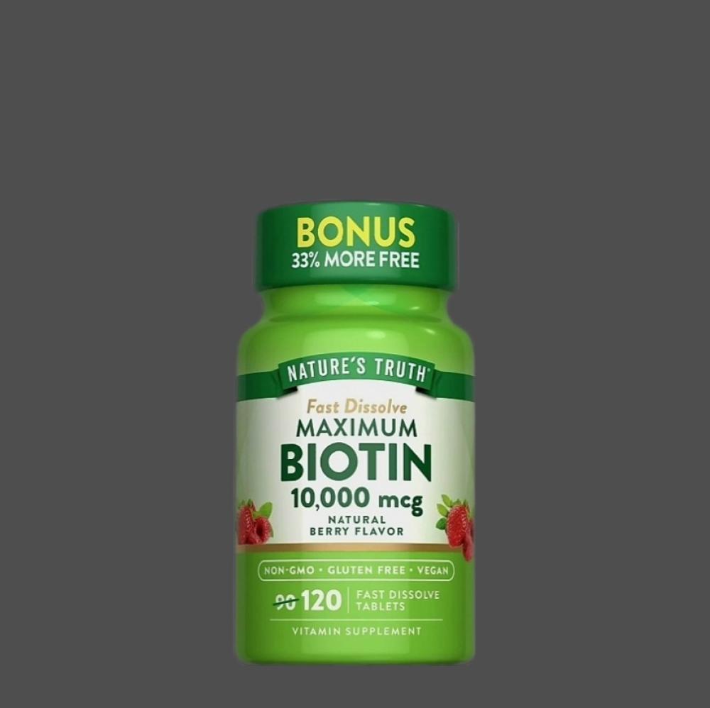 أقراص بيوتين ناتشرز تروث سريعة الذوبان بتركيز 10,000 ميكروغرام تحظى بتقدير كبير لسهولة استخدامها ومذاقها الرائع وفوائدها المُعلنة للشعر والبشرة والأظافر.